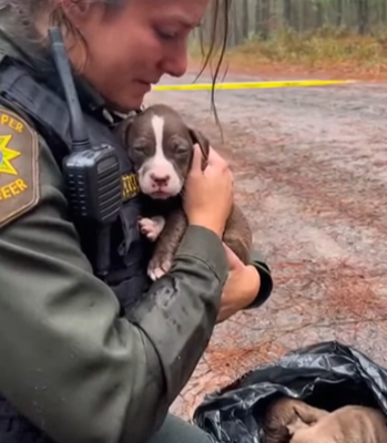 Elena tore through the final black trash bag with trembling hands. The yellow police tape snapped sharply in the cold breeze along the deserted logging road. The moment the plastic ripped open, a faint rustle revealed the heartbreaking scene: a…