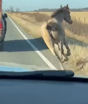 On a clear, sunny afternoon along a quiet rural highway, a worn-out beige horse with a dark mane stood precariously in the back of a battered red livestock truck. The words painted on the tailgate — “LIVESTOCK SLAUGHTER” — told…