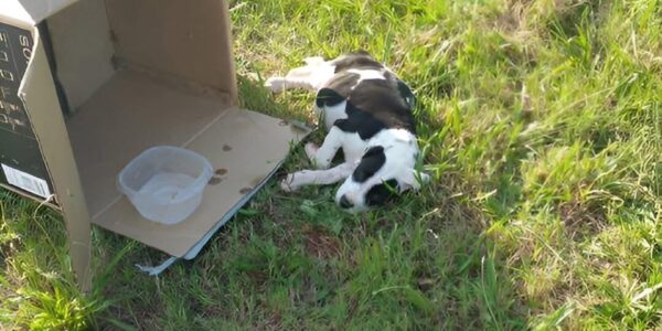 He lay there—still, silent, in the merciless heat of the day.The sun blazed down on the pavement. A ragged, collapsing cardboard box offered no shade. Beside him sat an empty bowl, bone-dry. Just a cruel echo of what he once…