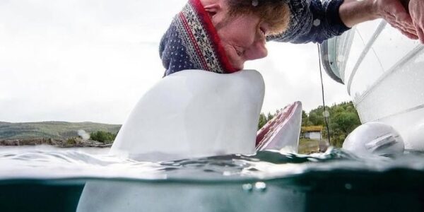 He didn’t thrash.He didn’t cry out.He simply swam—slowly, silently—brushing against the fishing boats as if trying to say, “Notice me… but don’t be afraid.” That’s how Joar first saw him.At a glance, he looked like any other beluga—graceful, ghostly white…