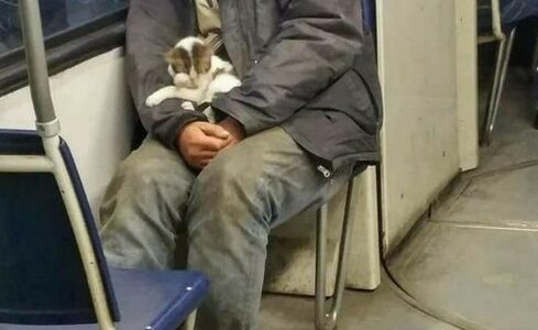 He wasn’t asking for anything. No sign. No cup. No sad eyes searching the crowd. Just a man on a train, coat zipped up against the cold, cradling a kitten so small she barely filled his hands. Most people didn’t…