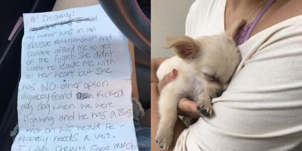 Airports are places of reunions and goodbyes—but on one summer day in Las Vegas, inside the quiet walls of a restroom, a goodbye was written not in words spoken aloud, but in a handwritten note left beside a tiny Chihuahua…