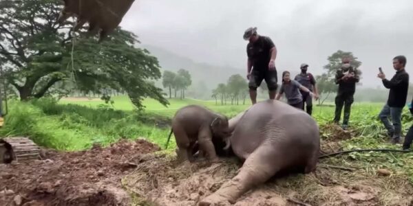 Mother and Baby Elephant Miraculously Rescued After Three-Hour Ordeal.