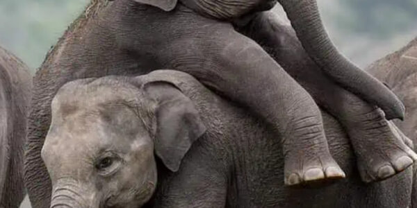 Adorable Playtime: A Young Elephant’s Jumbo Piggyback Adventure.