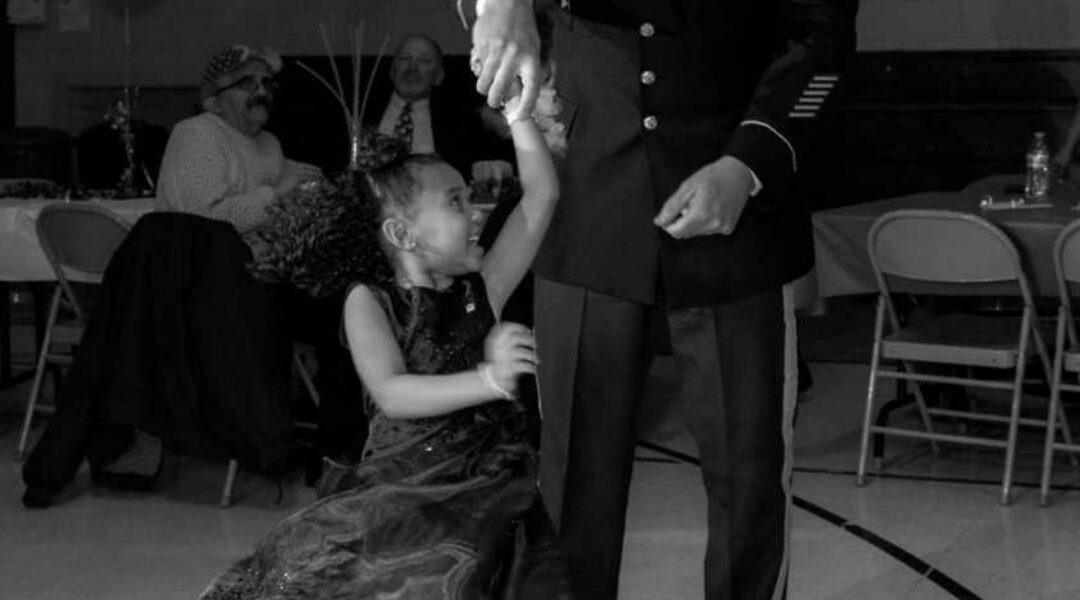 He spun her gently in circles, her laughter filling the room. For a few precious moments, she wasn’t a little girl missing her dad — she was just a daughter at a dance, held safe by the arms of someone who understood what her father stood for.