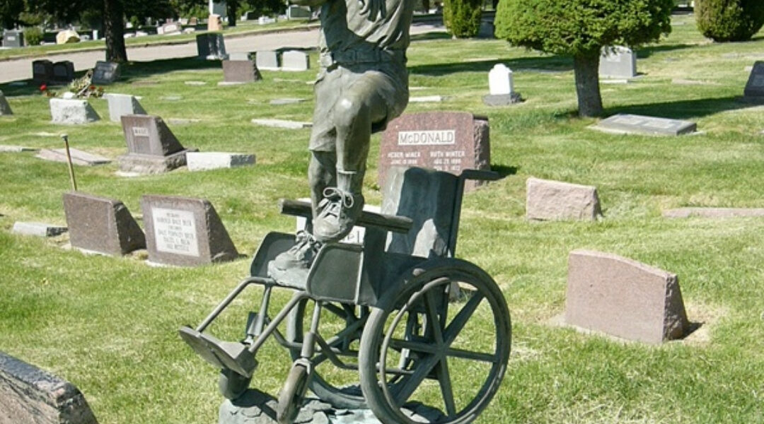 When visitors walk through the Salt Lake City Cemetery, they often stop in front of a grave that seems to defy sorrow. Rising from the headstone is a breathtaking sculpture — a young boy pushing himself out of his wheelchair, his arms lifted toward the sky, his face free and full of light. It is both heartbreaking and beautiful.