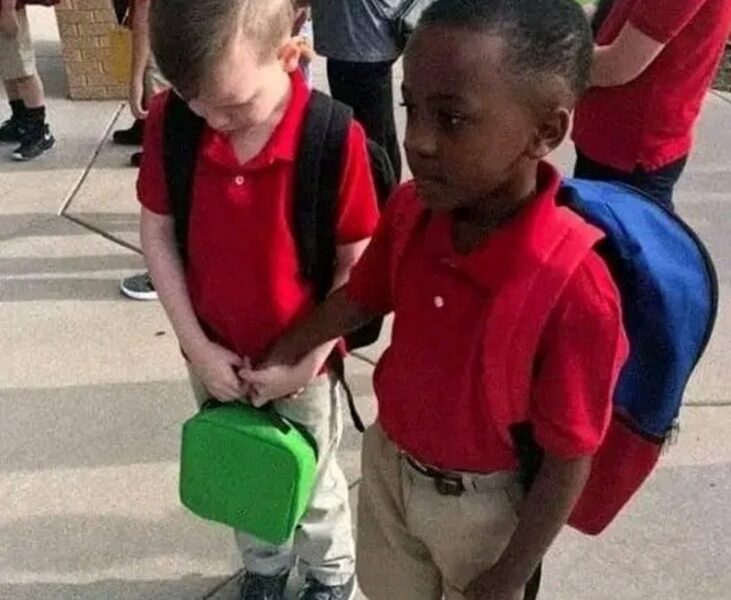 Without hesitation, my son walked over, knelt down to his level, and gently reached out. He held the boy’s hand, offering silent comfort and a sense of safety that words could never convey. Then, with a kind smile, he led him inside the school.