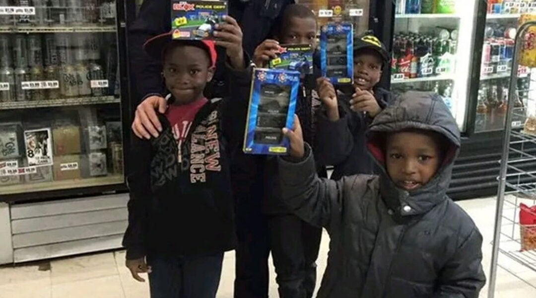 A few minutes later, Saunders stepped outside, and it seemed the moment was over. But then he returned, his arms full. He had gone out of his way to pick up small gifts for each child—police-themed Matchbox cars and Lego sets. When he handed them out, the children’s faces lit up with pure joy. Their grandmother looked on, clearly touched, while Saunders stayed to chat with them a little longer.
