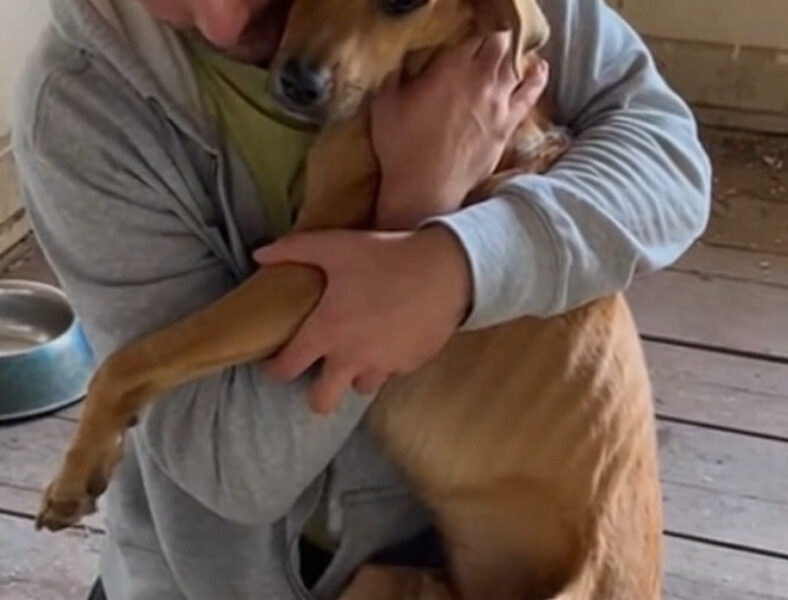 Daniel knelt down beside the dog, his heart heavy with the weight of what he was witnessing. He reached out a gentle hand, his voice low and calming. “Hey, buddy… I’m here,” he whispered, trying to soothe the animal that had endured so much. His hands shook as he carefully lifted the dog into his arms, the animal’s body weak and trembling. It pushed its muzzle into Daniel’s collar, clinging to him with the last bit of strength it had left.