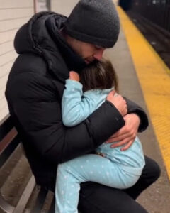 The girl’s tiny body trembled in his arms, and Elias could feel her soft sobs against his chest. He didn’t rush, not wanting to overwhelm her further. The platform was cold, the air filled with the sounds of distant trains, but none of that mattered. Right now, his world was this little girl, lost and alone, and he would do everything he could to make sure she felt safe.