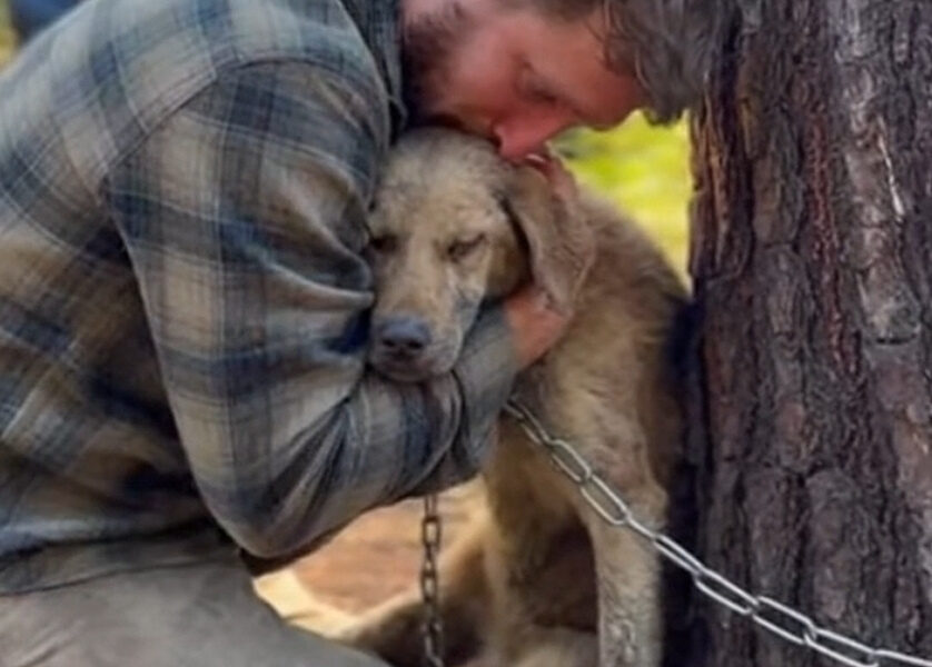 Later, they would carry the dog out of the woods. But here, in this moment, rooted together beneath the pine tree, trust was being rebuilt—one gentle touch, one whisper at a time. There would be time for recovery, for healing, for finding a home. But for now, Bennett stayed in that quiet place, offering the dog nothing but the warmth of his embrace and the promise of a future far away from chains.