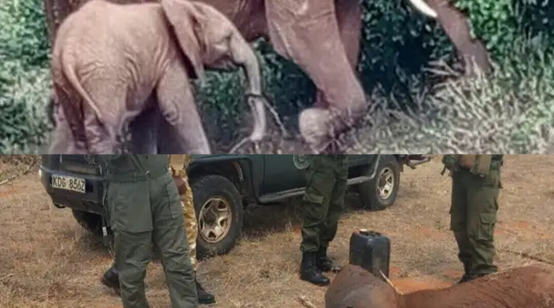 The savanna stretched wide and golden under the Kenyan sun, a place where life moves in rhythm with the earth. Among the shifting herds of Tsavo East National Park, a young calf wandered close at her mother’s side. Barely a year old, she was still learning the world through her trunk — tugging at grass, splashing water, reaching for her mother’s tail. From a distance, she looked like any other baby elephant: playful, curious, safe within her mother’s towering shadow.