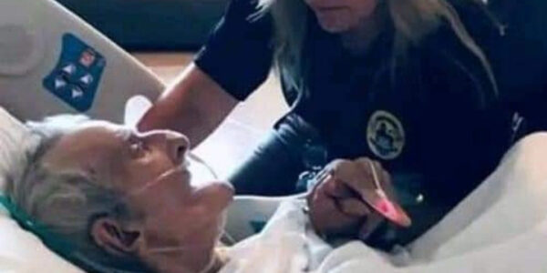 It’s easy to look at the photo and see what seems obvious — a woman sitting beside an elderly man, her hand gently resting over his, her face filled with quiet compassion. You might think she’s his granddaughter, maybe his…