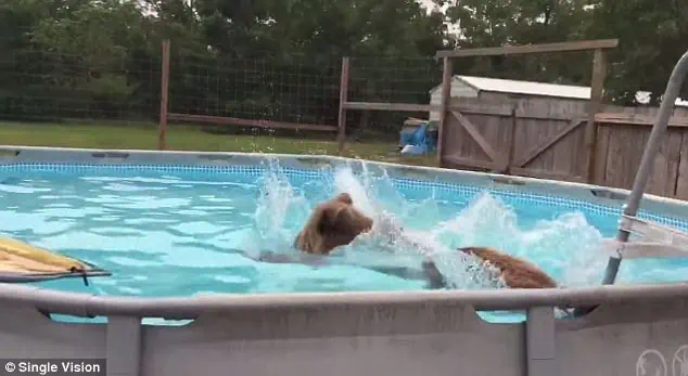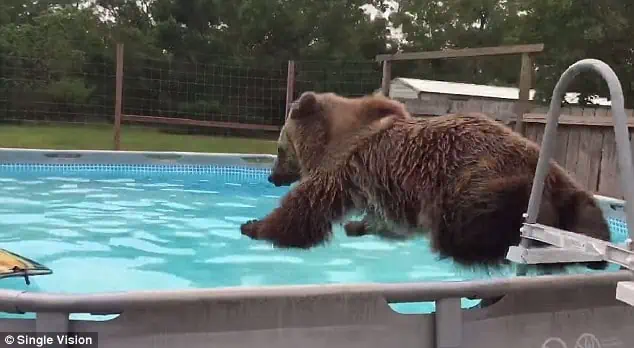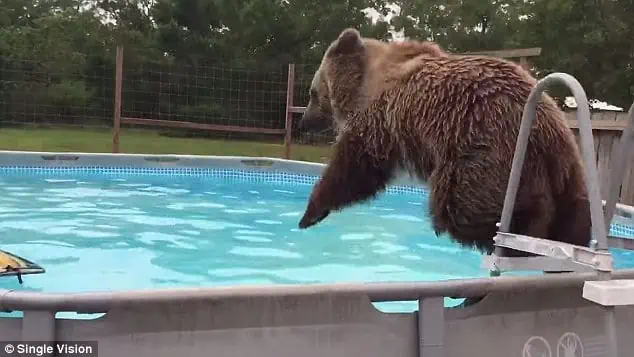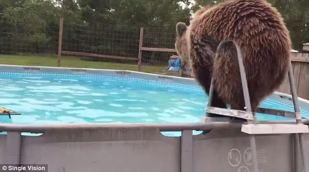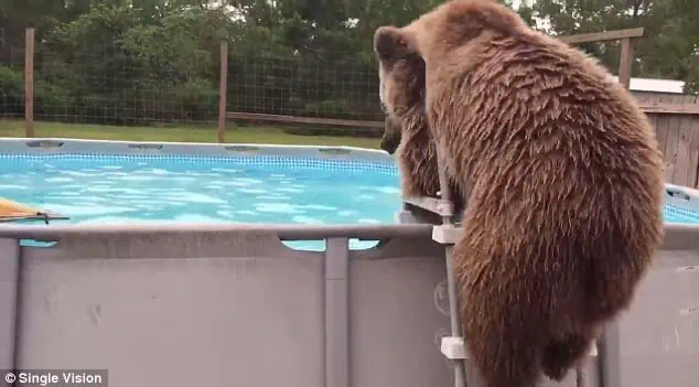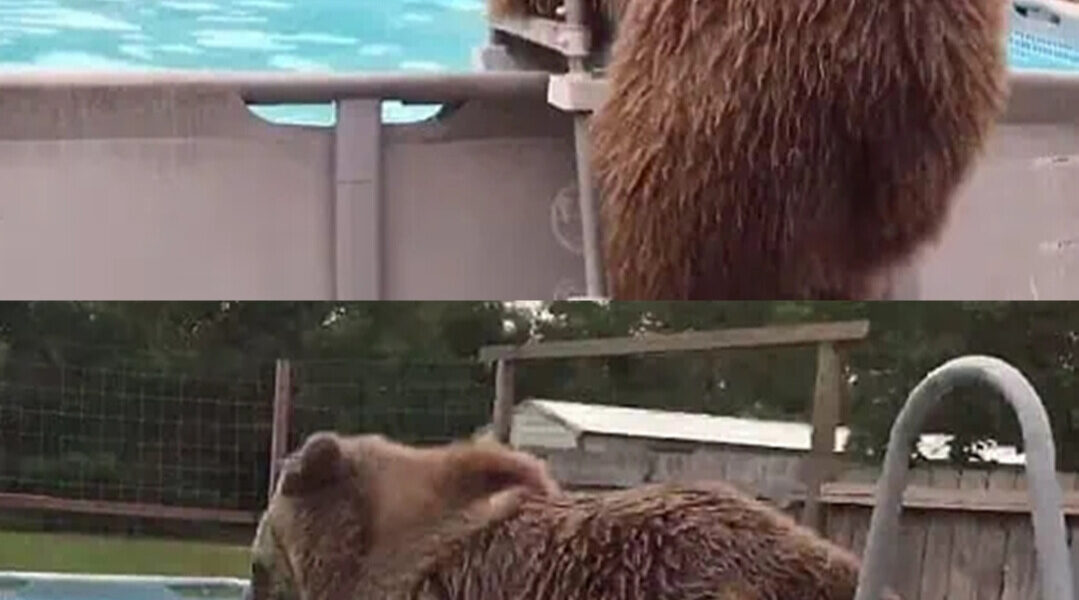 His name is Bruiser, a four-year-old grizzly bear with a playful spirit and a surprising knack for pool etiquette. Unlike other animals who might wade clumsily into the water, Bruiser prefers a proper entrance. In a now-viral video, he is seen carefully climbing up the pool ladder—yes, step by step—before launching himself into the water with the enthusiasm of a child on summer break.