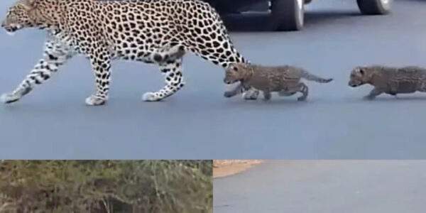 Adorable Leopards Cross Road with a Little Help from Their Mom.