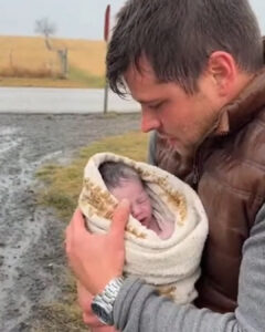 He wrapped her carefully, using his body to block the wind, pressing warmth into her tiny frame. Her cry softened into a weak whimper, then—miraculously—into a sound that almost resembled relief.