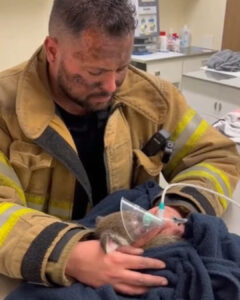 She was impossibly small — no bigger than Marcus’s palm. Her eyes were squeezed shut, her skin pink beneath sparse fur, her tiny chest fluttering in shallow, panicked gasps that sounded more like whispers than breaths. Smoke had filled the air for hours. Every breath she took was a struggle.
