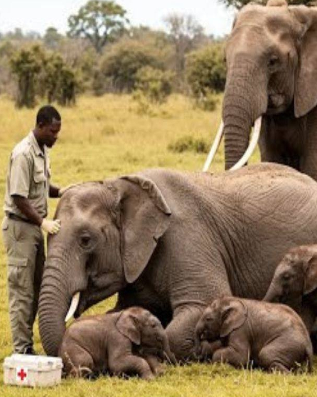 For a moment, even the earth seemed to hold its breath. Elephant twins are so rare that many wildlife rangers go their entire careers without witnessing it. The calves, still trembling and wet from birth, pressed close to their exhausted mother, who stretched her trunk to caress them as if to reassure both herself and them: You are safe. You are mine.