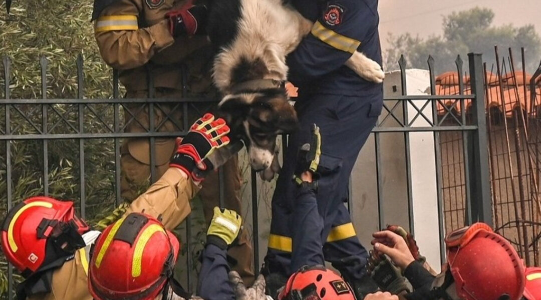 This image, captured amid the terrible fires in Los Angeles, tells one of those stories. A group of firefighters—faces streaked with soot, uniforms heavy with sweat and ash—work together, arms outstretched, to lift a frightened dog over a fence to safety. The scene is chaotic, the air thick, but their focus is absolute. For them, saving this one life is not a distraction from their mission. It is the mission.