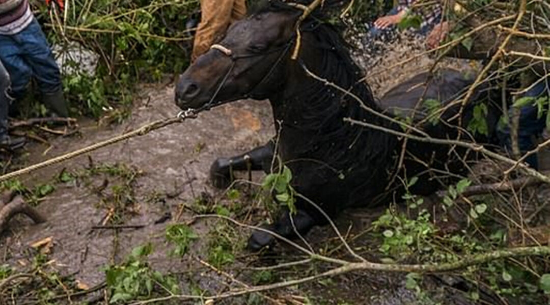 Horse rescued and dragged to safety after being flung into bog | The Independent | The Independent