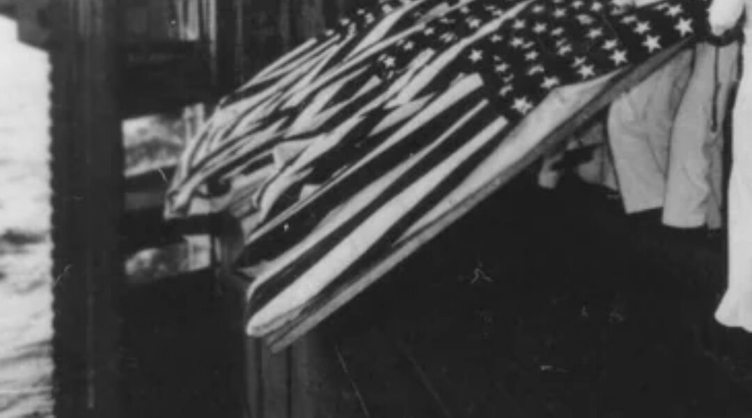 This image — black and white, silent, eternal — captures that truth. Along the edge of a great warship, a line of sailors stands in solemn formation. Their uniforms are crisp, their hands steady as they hold folded flags over the water. Below them, the waves rise and fall, indifferent yet eternal, mirroring the heartbeat of a world that still grieves.