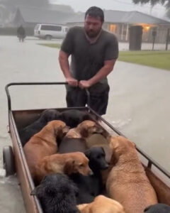 They were soaked, shaking, eyes wide and shining. Some stood rigid, others crouched low, paws braced against the thin metal sides as the water surged around them. Their smell—wet fur, fear, and something faintly metallic—mixed with the sharp scent of oil from Evan’s grease-stained shirt.