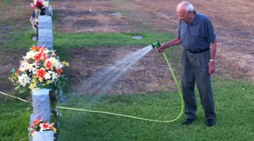 This summer in Texas, the drought turned cemeteries into parched landscapes. The grass withered, the earth cracked. Jake could not bear to see the ground around his wife’s resting place so dry, so lifeless. So he added another step to his ritual: watering the grass around her grave. Day after day, he came not only with a rose, but with a watering can, bringing life back to the soil where her memory rests.