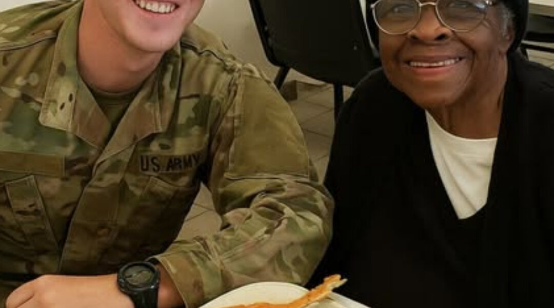 A nurse quietly snapped the photo — a soldier kneeling beside an elderly widow who refused to let love die just because her husband did.