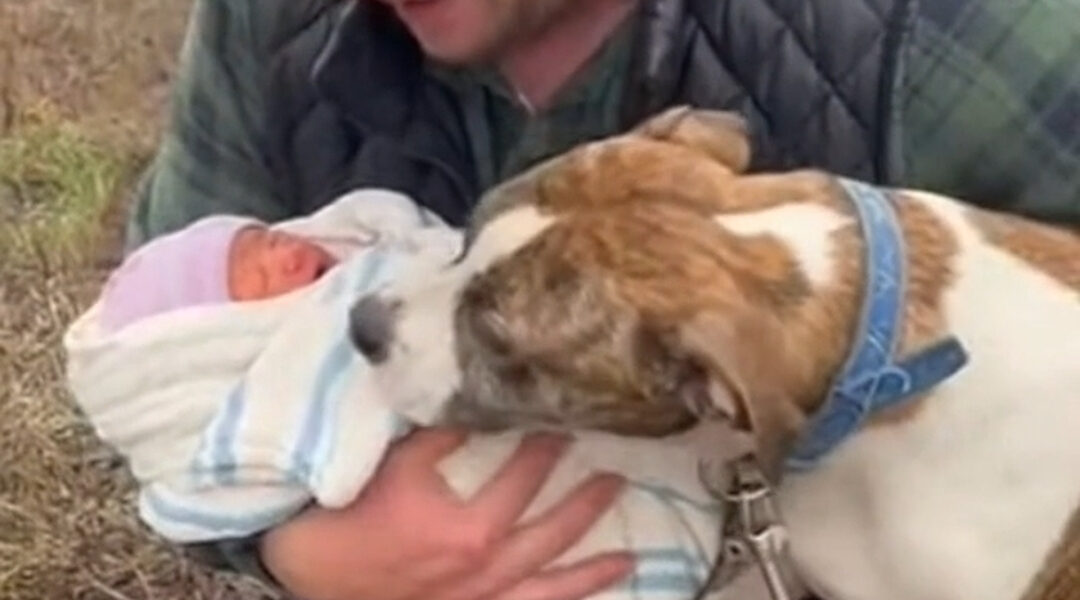 The dog strained again, ignoring its own pain, nose reaching toward the baby, whining harder now—not for itself, but for the tiny life beside it.