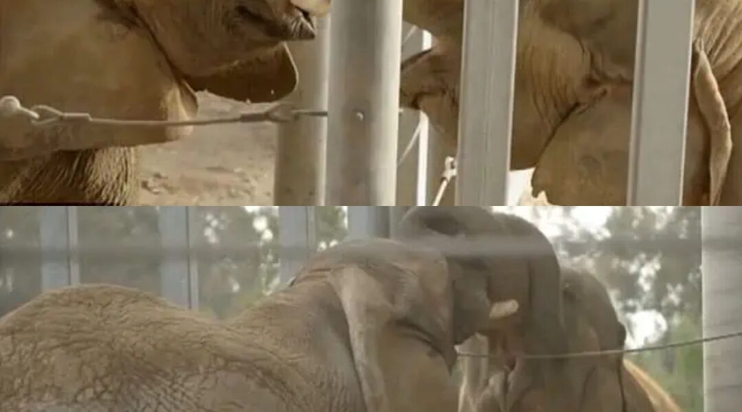The gates opened just enough to let the two elephants see each other through a secure barrier. Mila froze. She stared. And then, the air shifted — soft, hopeful, electric.
