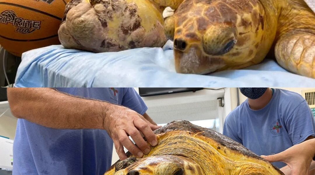 In the shallow blue waters of the Florida Keys, a female loggerhead sea turtle fought to keep herself afloat, each stroke slower than the last. From a distance, she looked like any other turtle moving through familiar seas. Up close, the truth was devastating. Attached to her body was a massive tumor weighing nearly ten pounds, dragging her downward like an anchor. Every time she tried to surface for air, the weight pulled her back.