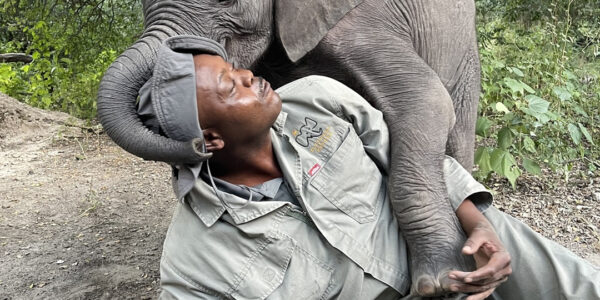 Some photographs say more than words ever could. One image, taken beneath the shade of trees, captures a moment that holds an entire world of meaning: a tiny elephant calf pressing her trunk against the man lying in the dirt…