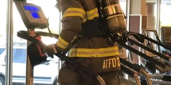 At first glance, it looked like just another evening at the gym. The machines hummed, people jogged on treadmills, headphones in, lost in their own rhythm. But then, in the corner, a sight caught everyone’s eye: a firefighter, dressed head…