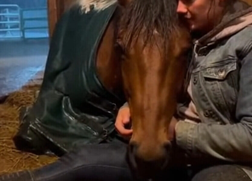 She slid one arm around the mare’s neck and pulled her slightly closer, letting the animal lean fully against her chest.
