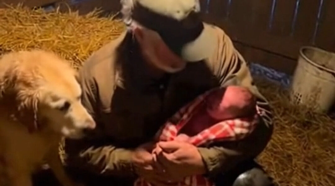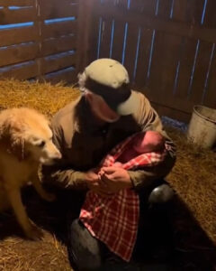He rocked slowly, instinct taking over, pressing warmth into warmth. The retriever stepped closer, resting her head against Joe’s leg, eyes never leaving the baby. Her tail thumped once against the straw—weak, but certain.