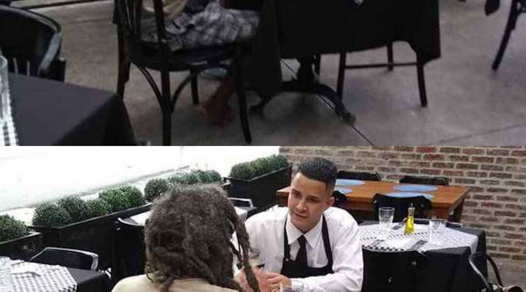 One afternoon, in a quiet corner of a fine-dining restaurant, a man with weathered hands and matted hair walked through the doors. He didn’t ask for spare change or leftover food. Instead, he looked at the waiter and said softly, “Can I have a seat? I’d like to eat here.”