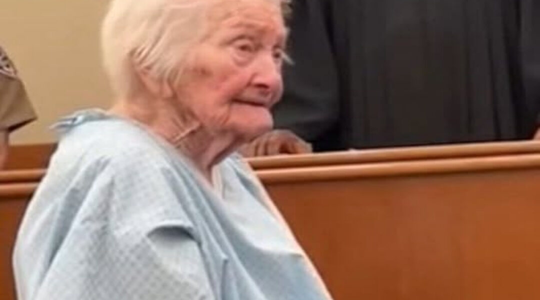 Only a trembling 91-year-old woman stood before the judge, her thin hospital gown barely reaching her calves, her frail arms wrapped in chains that looked impossibly heavy against her paper-white skin.