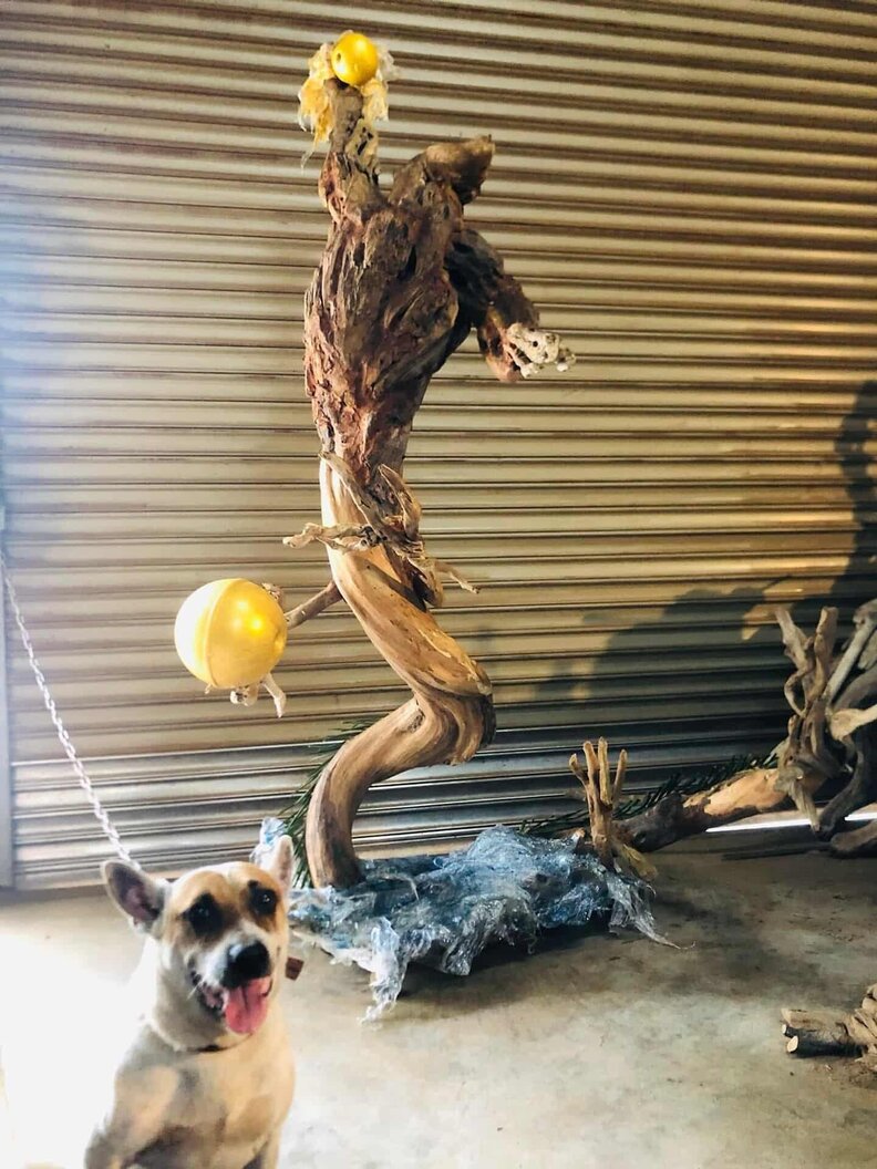 Back at the studio, Hachiko would curl up near the workbench, head resting on his paws as Liang pieced together the driftwood into life again—birds, waves, trees, and sometimes abstract forms that seemed to hold whispers of the sea. Occasionally, Hachiko would nudge a piece with his nose, as if offering his own creative touch. “He’d move the wood around,” Liang laughed. “Maybe he thought he was helping.”