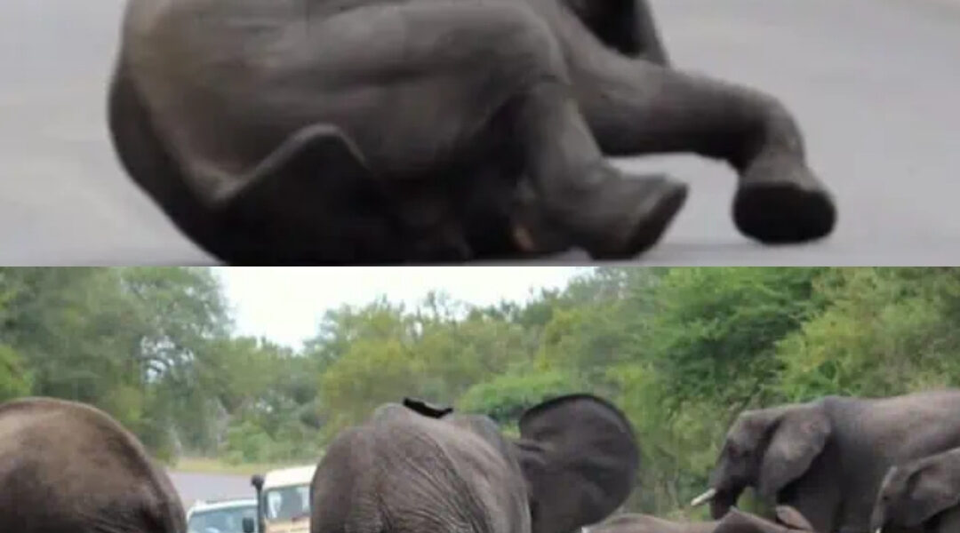 One by one, elephants of all sizes stepped forward, forming a circle around the fallen calf—a wall of solid gray bodies, trunks swaying gently, ears extended as if ready to shield the little one from the world.