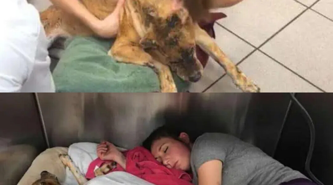 The next morning, Martin crawled into his kennel at the clinic, wrapping her arms gently around him. Exhausted, both of them drifted off to sleep together. A coworker snapped a photo — a burned dog and his vet, asleep in each other’s care — and it quickly became a symbol of pure compassion.