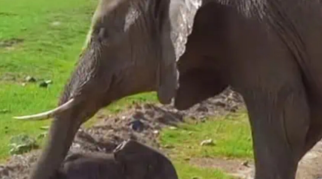 His mother reacted instantly. She plunged toward him, her massive body cutting through the water like a ship. Reaching him, she wrapped her trunk around his chest and lifted. He gasped, trunk breaking the surface — and then, as he steadied, he remembered.