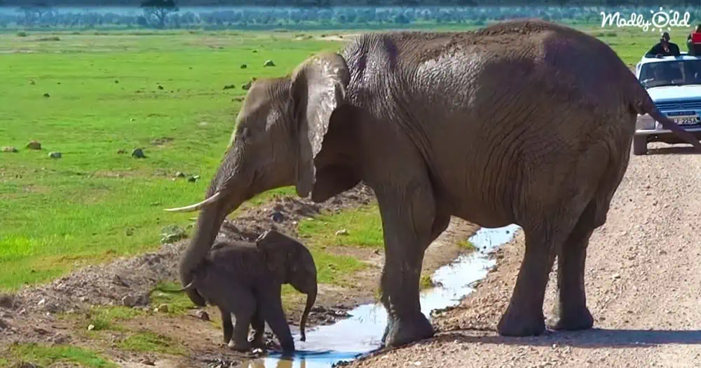 His mother, wise and patient, never forced him. She would wrap her trunk gently around his body, humming low, comforting him in the language of elephants — a vibration that spoke of safety and love.