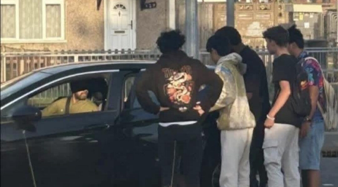 At first glance, it looked like the usual scene — lads chatting, maybe asking for directions, maybe just talking to a driver they knew.