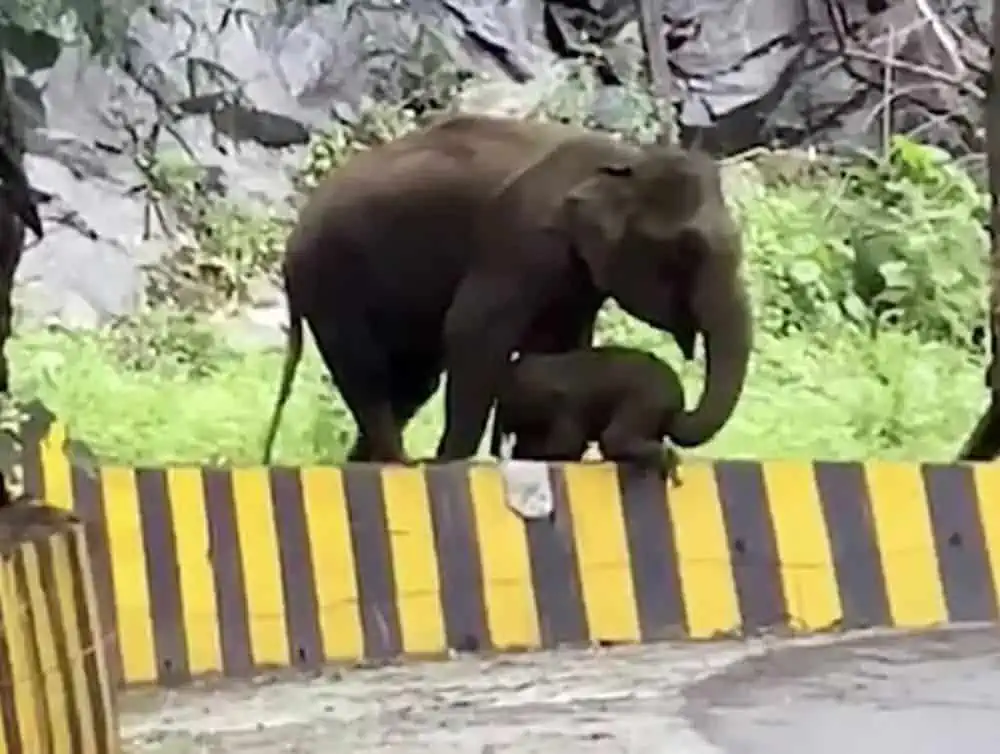 Cyclist Anish Kata, who happened to be passing by with friends, witnessed the moment. From a safe distance, he filmed the interaction, his heart swelling with emotion. “It was early morning,” he later recalled. “We stopped our bikes when we saw the elephants. The mother was so calm, so focused. She used her trunk to lift the baby — it was one of the most beautiful things I’ve ever seen.”