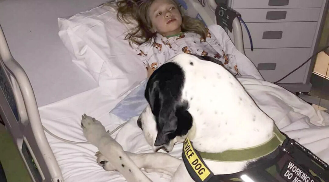 The nurses had never seen anything quite like it. When the little girl stirred, the dog would lift his head immediately. When she cried, he’d gently rest his paw on her arm. When she tried to sit up, he steadied her — slow, patient, deliberate — becoming her anchor in a world of wires and white walls.