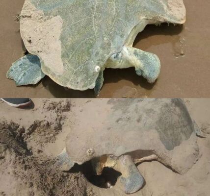 The early morning sun was already blistering, casting long, hot shadows over the quiet beach in Equatorial Guinea. And there, motionless in the sand, was something ancient—something immense. A leatherback sea turtle. Her body stretched nearly six feet, her thick, ridged shell dusted with grit and tangled bits of jungle. But it wasn’t her size that stopped the team in their tracks. It was her stillness.