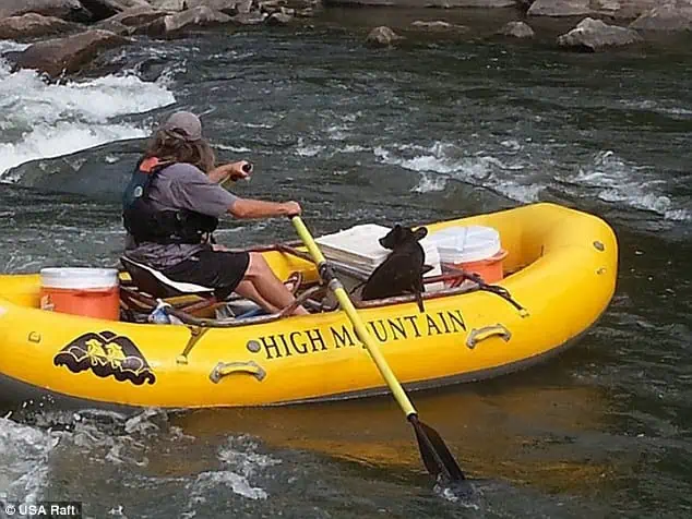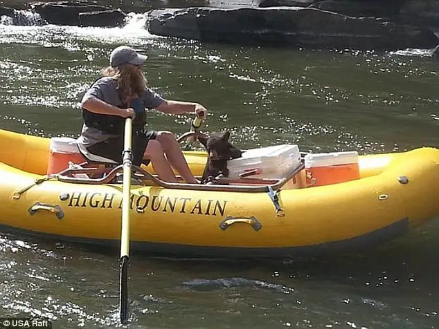 It was the first time in known history that a bear had voluntarily boarded a raft to save her own life.