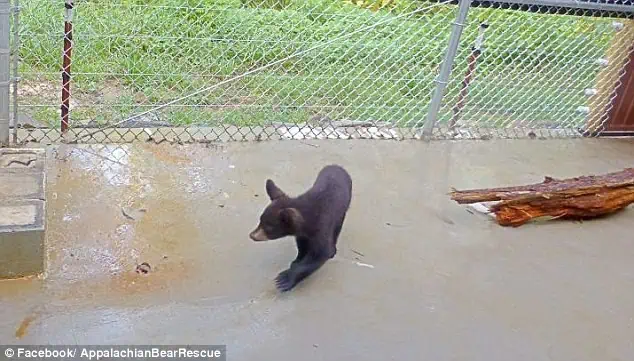 A bear cub alone is in trouble.