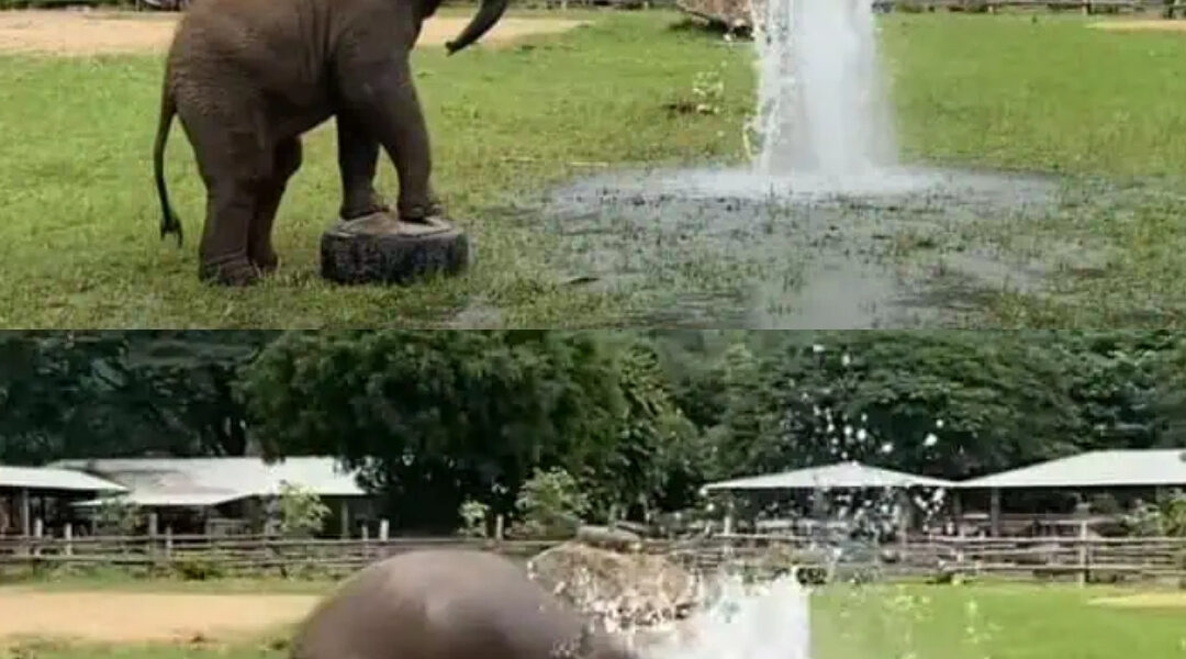 Her trunk, still learning its strength and purpose, flopped and curled as she tried to “direct” the spray. Water splashed across her face, her back, her belly. Mud formed at her feet, turning her playtime into a two-in-one water park and mud bath.