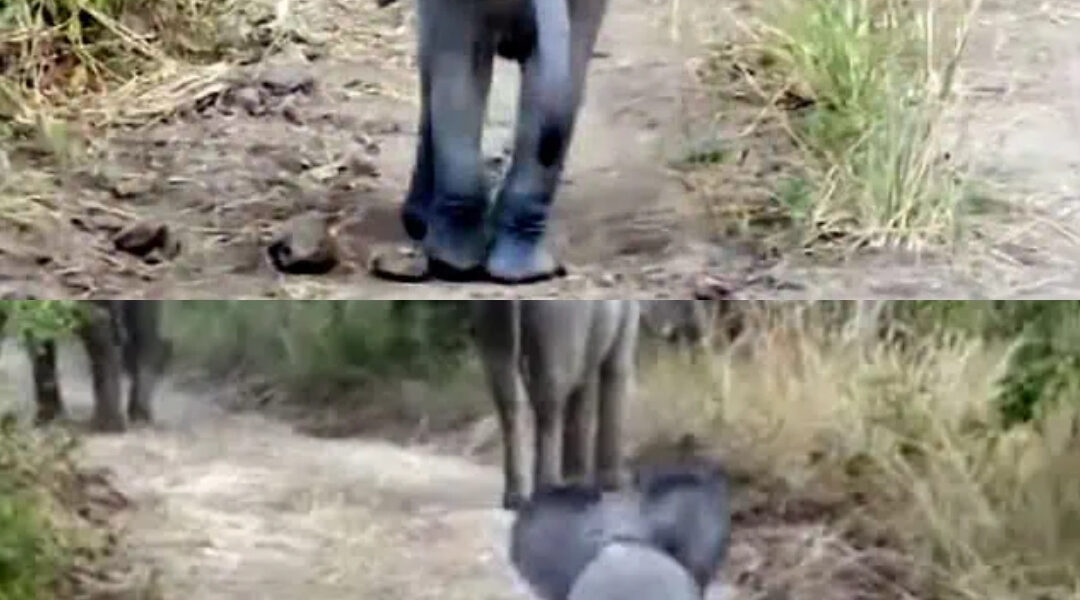 Adult elephants do this when they need to intimidate a threat — lifting their enormous bodies to appear larger, more imposing, more formidable. But elephant calves? They barely have the balance to walk in a straight line.